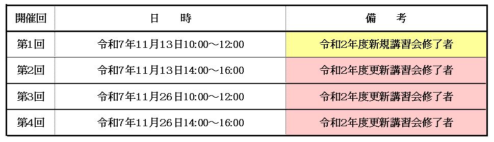 ※2 令和2年度更新講習会修了者でこれから申込まれる方は、第4回の受講となります。